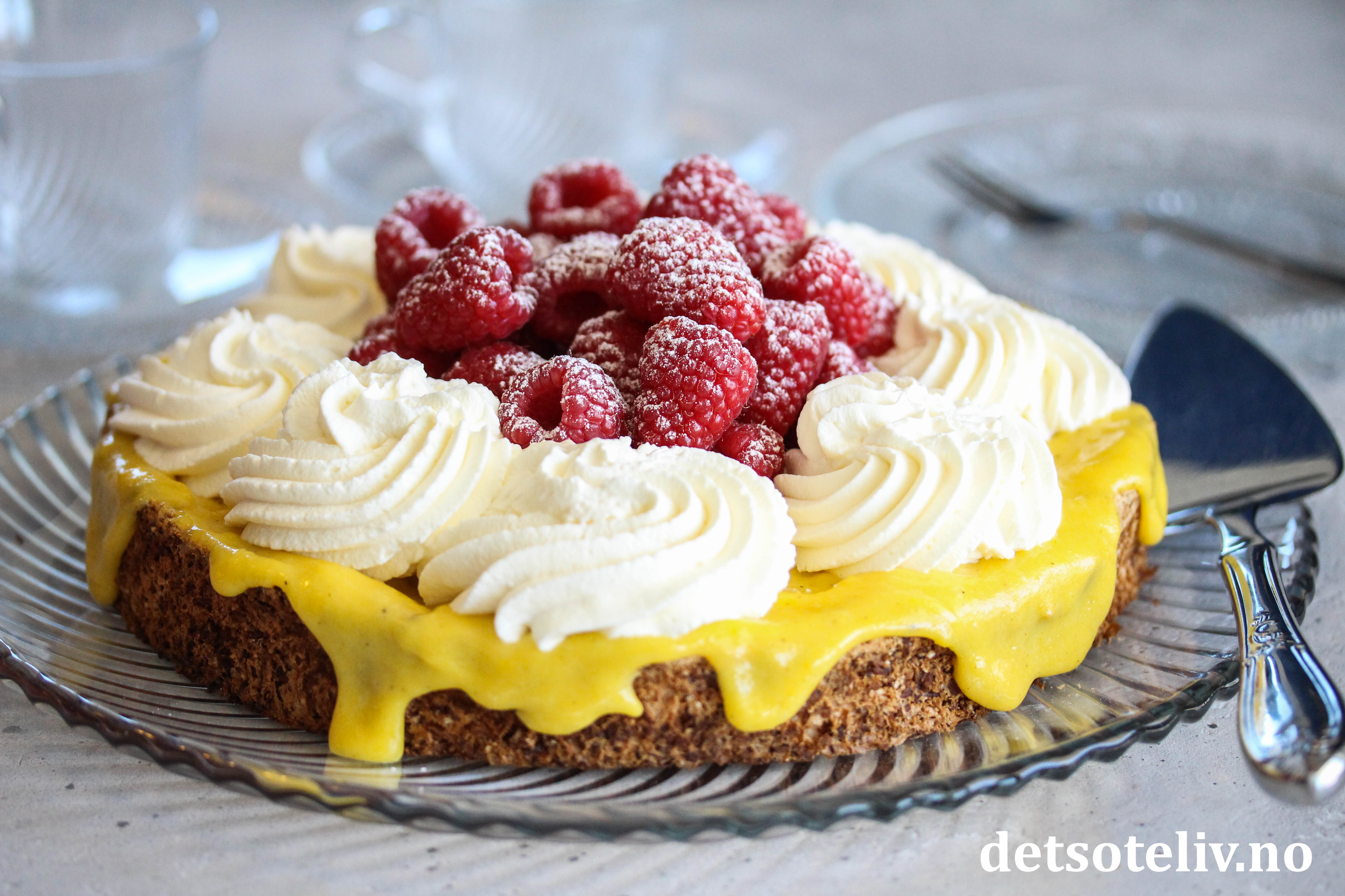 Kaken har godt av å stå og trekke i noen timer før servering, men smaker best samme dag. Kokosbunnen kan godt lages dagen i forveien.