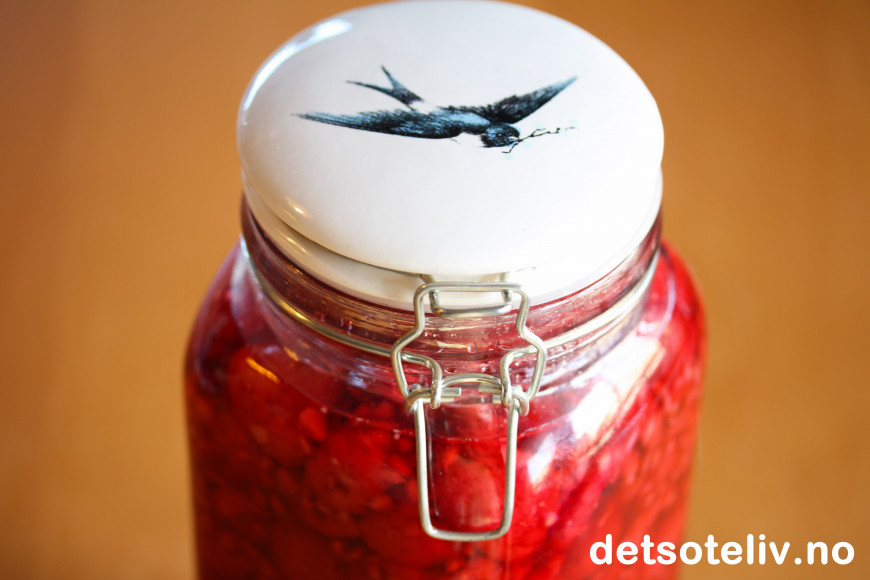 ♥ Du kan få kjøpt små glassflasker med tette syltetøylokk på Kremmerhuset, IKEA og lignende butikker som egner seg utmerket til å oppbevare den ferdige likøren.