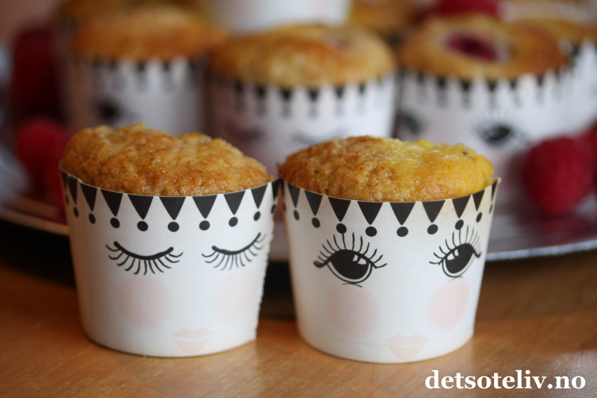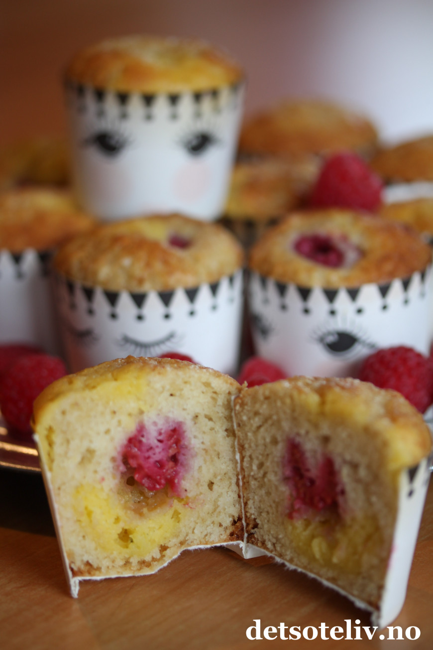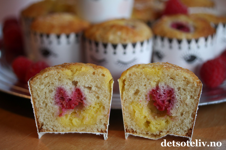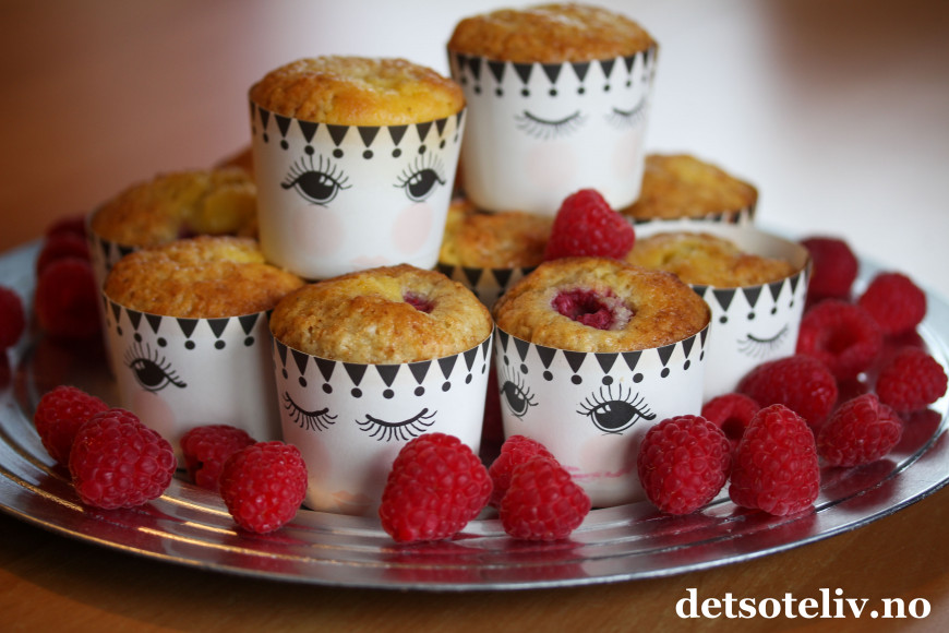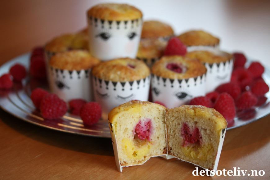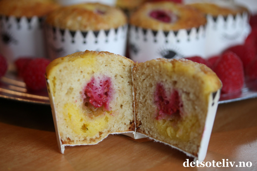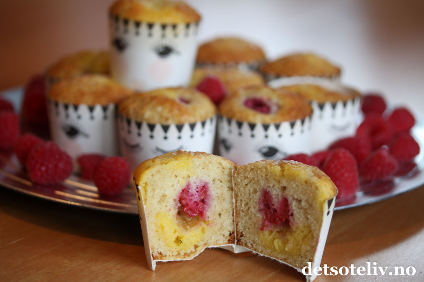 Nydelige bringebærmuffins, som er superlettvinte å lage!