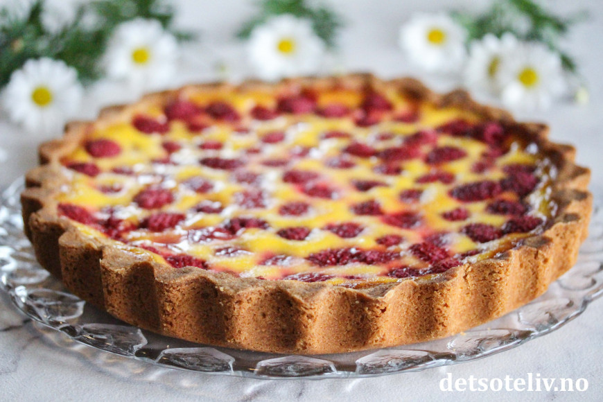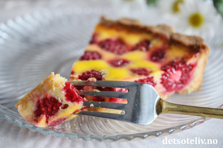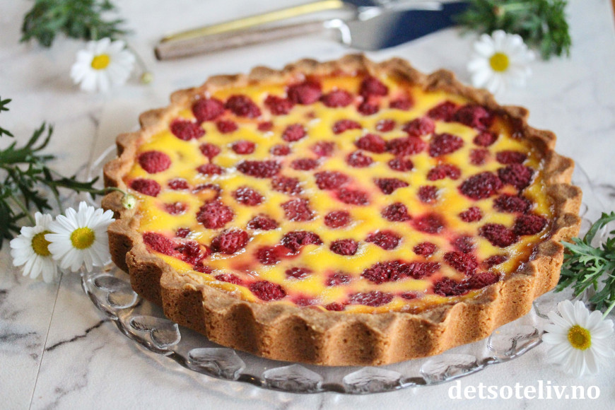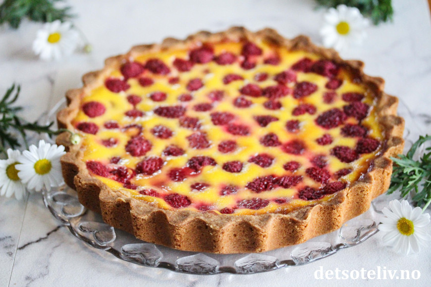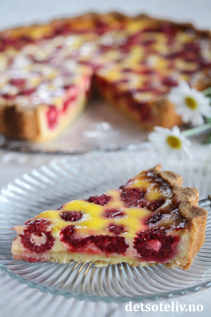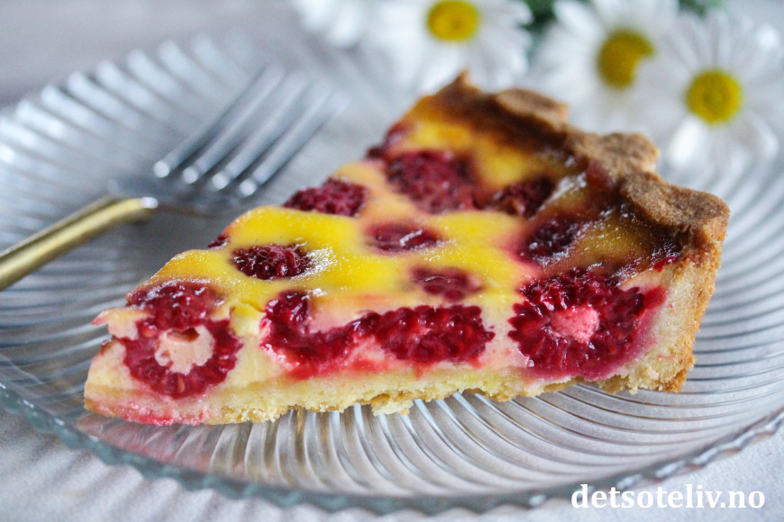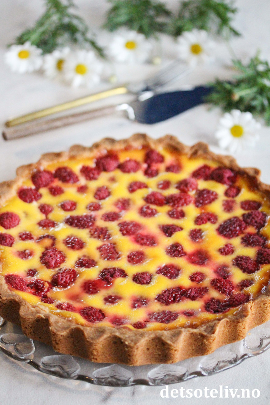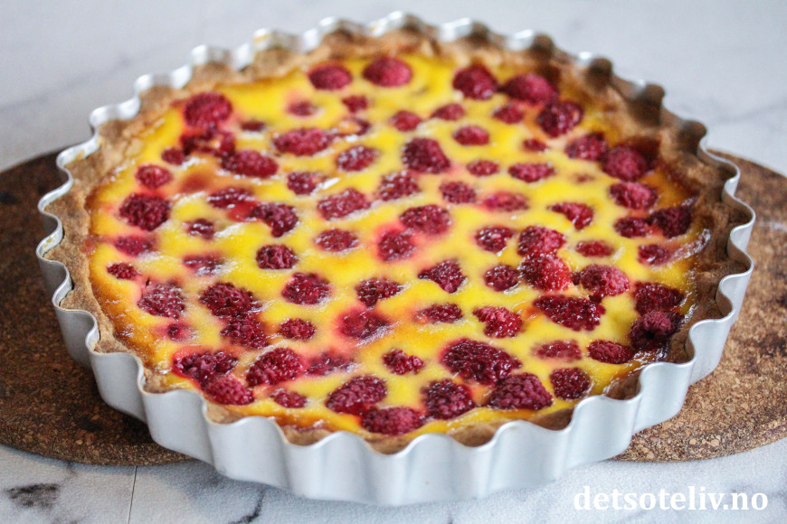Jeg har i dag laget en vidunderlig god Bringebærpai med crème fraîche. Fyllet blir kremete og deilig i denne sommerlige kaken!