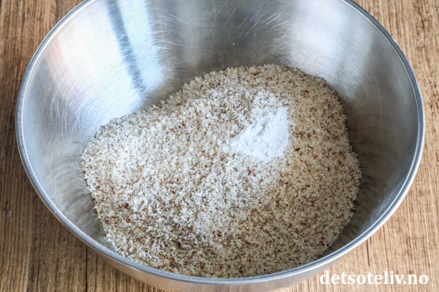 Mal mandlene og bland inn bakepulveret.