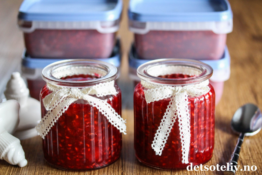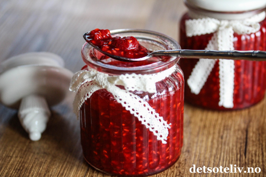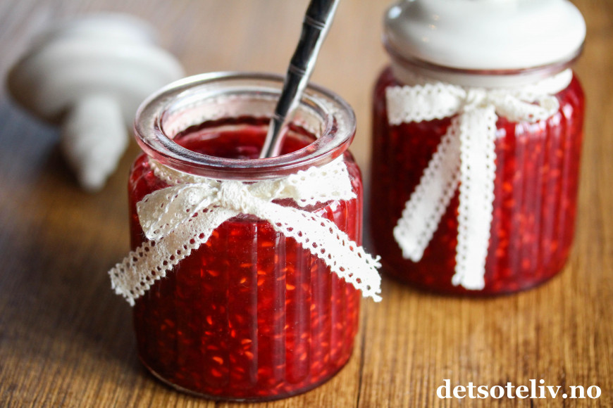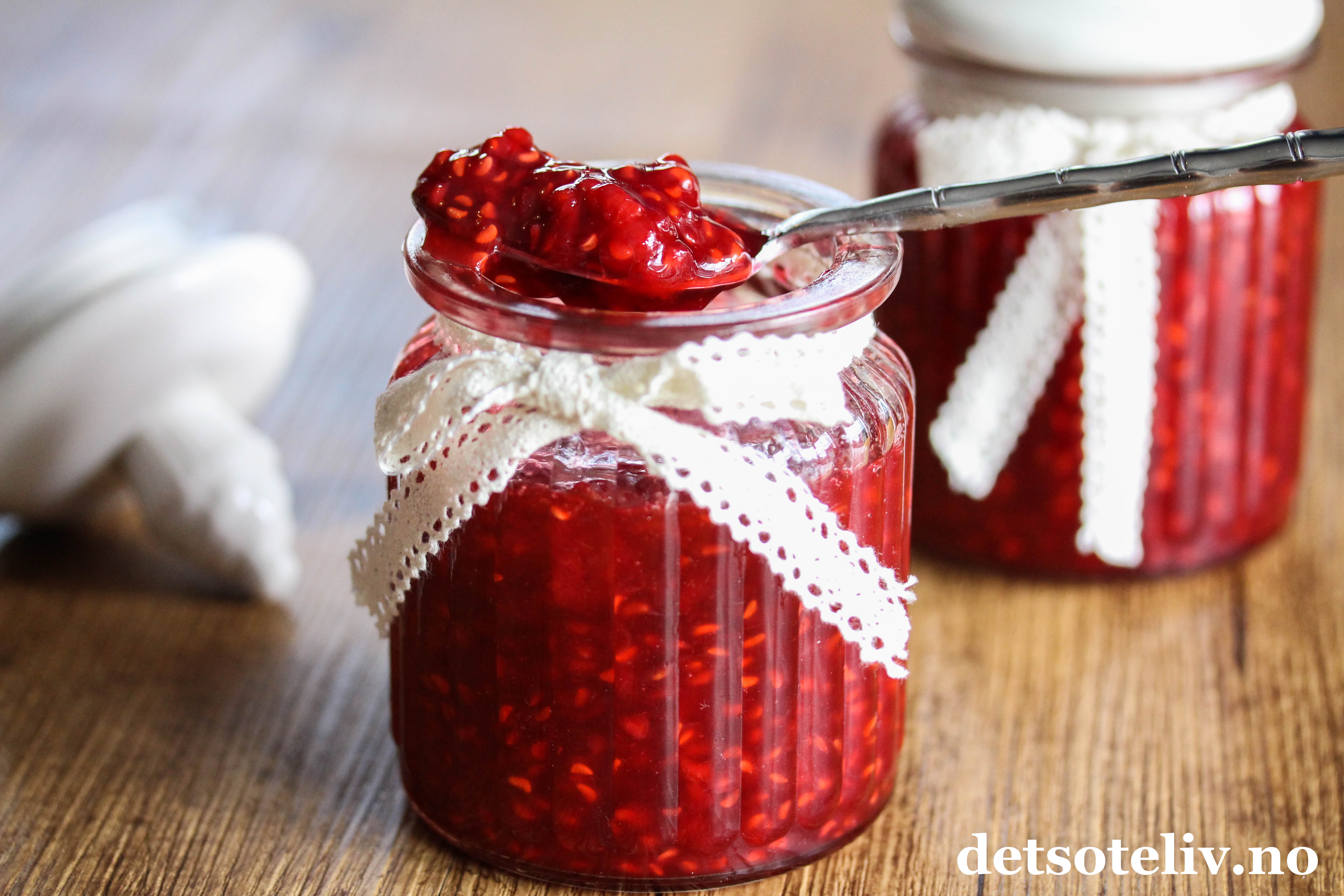 Nydelig, hjemmelaget bringebærsyltetøy!