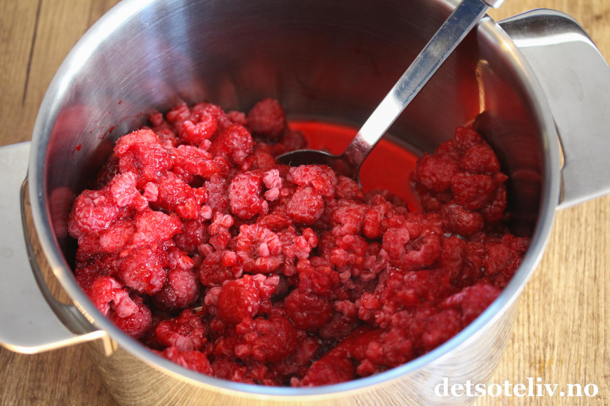 ♥ Bruk søte, ferske, norske bringebær hvis du får tak i, men det går også helt fint å lage bringebærsyltetøy med frosne bringebær.