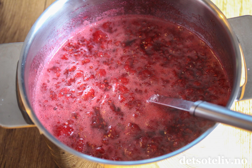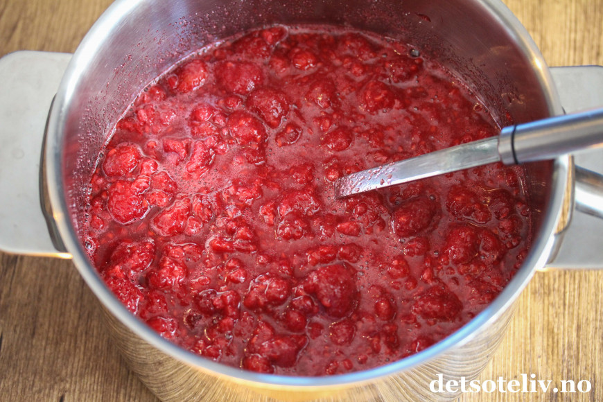 Varm opp blandingen og la syltetøyet småkoke i ca. 10 minutter.