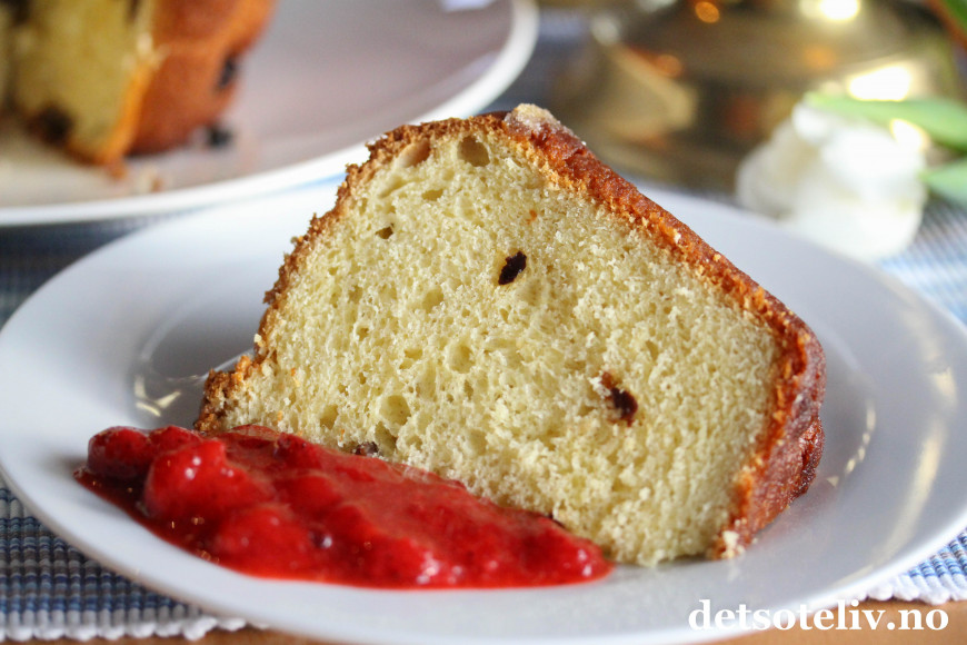 Men som sagt er ikke kaken så veldig søt, så server kaken gjerne varm og nystekt sammen med deilig, rørt syltetøy.