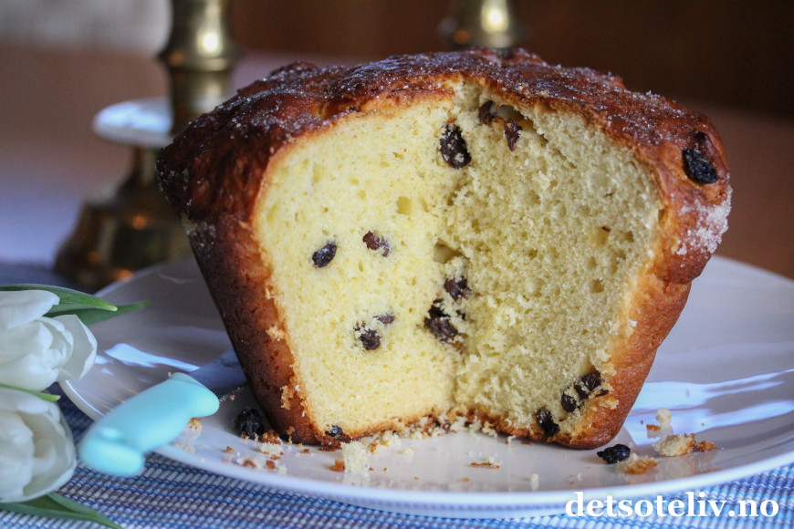 Briochekake inneholder rosiner, men er ellers ikke så veldig søt, så server den gjerne nystekt med rørt syltetøy.