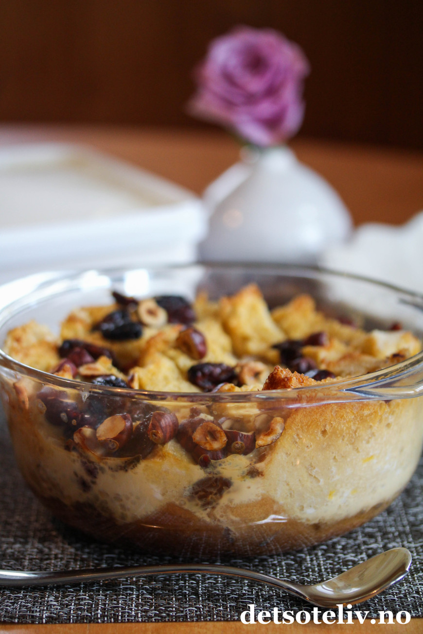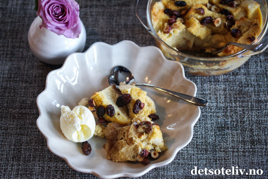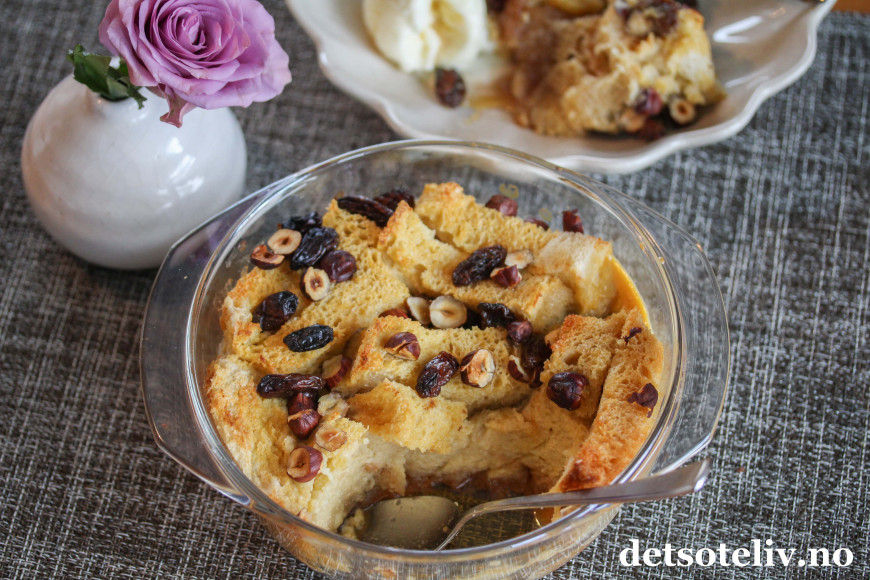♥ Ikke la deg skremme av at brødpuddingen skal steke i vannbad. Det er veldig enkelt og dampen gjør at konsistensen blir myk og superherlig!