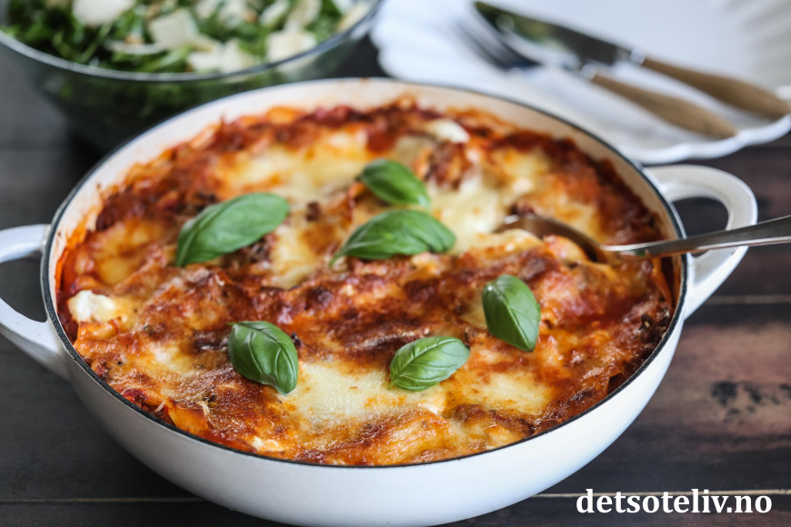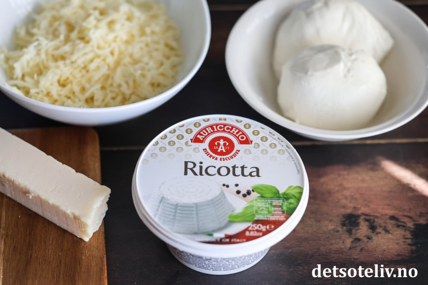 ♥ Ricotta er en italiensk ferskost som fås kjøpt i de fleste matbutikker, og gir herlige, kremete partier i Lasagnen som fin erstatning til den hvite sausen som man ellers bruker i en Lasagne. Får du ikke tak i ricotta, kan du bruke kremost naturell.