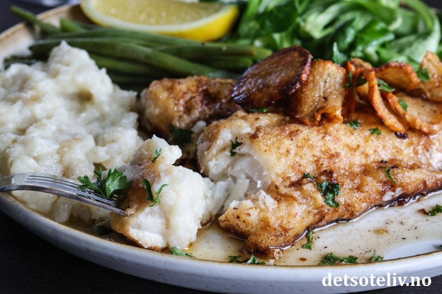 Nydelig måltid med brosme og sauce meunière!