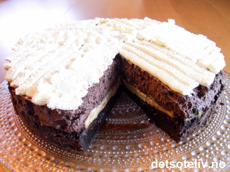 Kakebunn à la Brownies! Så vaniljekrem. Deretter et tykt lag myk, mørk sjokolademousse. Så søt, luftig, pisket krem. Olala! - Man skjønner straks man ser oppskriften at dette bare må bli NYDELIG!