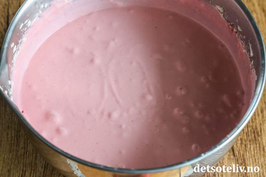 Pisk med en ballongvisp slik at du får en jevn, rosa krem.