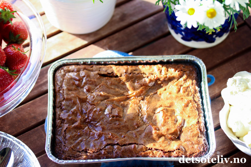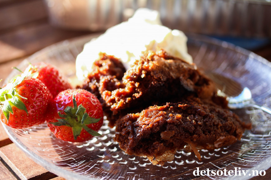 Superdeilig, myk sjokoladebrownie - så nystekt som den kan få blitt!