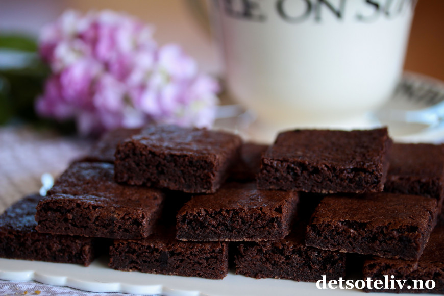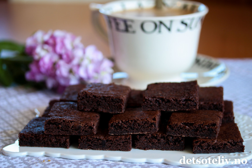 Denne kaken er fantastisk! Har prøvd og feilet en million brownie-oppskrifter, men denne blir ALLTID perfekt. Kan si det, for den er blitt laget tre ganger på bare en uke...! Liker den aller best etter en tur i kjøleskapet, da er den deilig og seig. Anbefaler!!