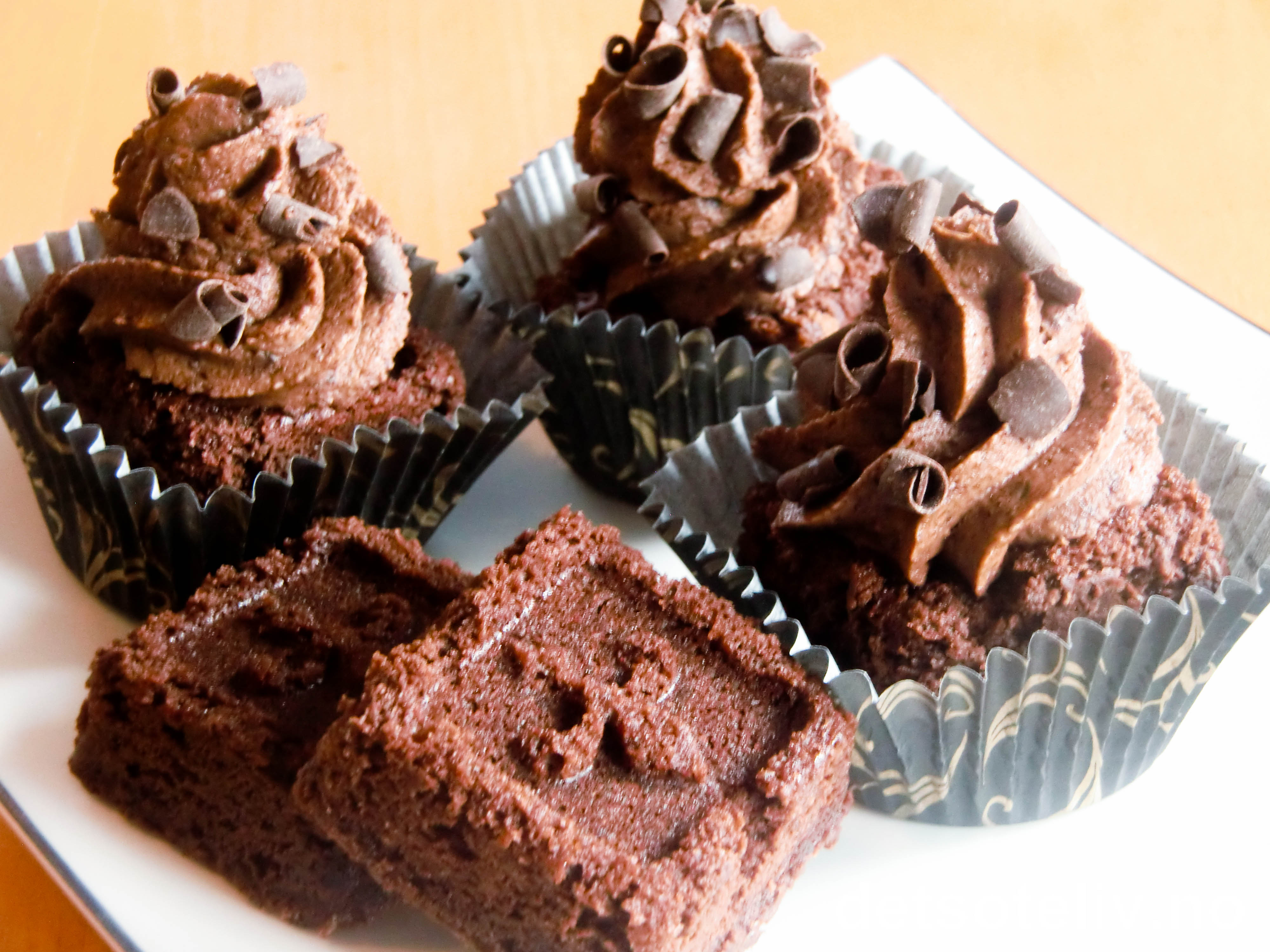 Litt fuktige, mørke sjokoladebrownies med hint av kaffe og vanilje smaker fantastisk godt sammen med en lett og luftig After Eight-krem.