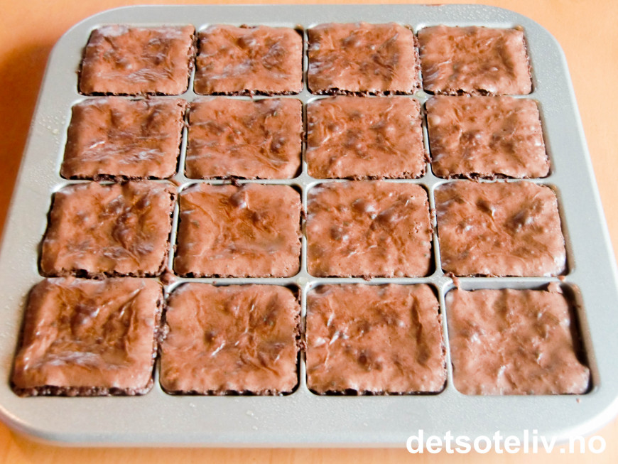 Eller hvelver ut av formen hvis du bruker slik form jeg har her - vips har du brownies i lik størrelse og med lekkert mønster!