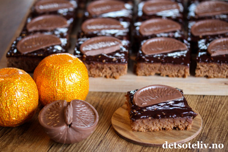Brownies med appelsinsjokolade holder seg myke lenge i kjøleskapet hvis du pakker dem inn i plast.