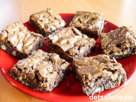 ♥ Brownies med dadler holder seg myke lenge dersom de pakkes inn i plast. Kakene er også kjempefine å fryse.