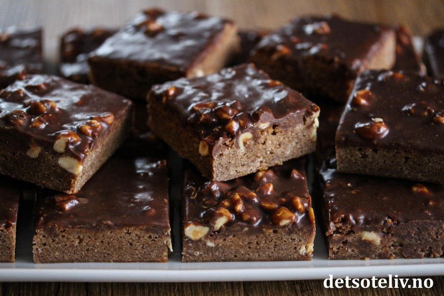 Ja, det blir søtt når seige Brownies skal dekkes med glasur laget av lys sjokolade. Jeg skjønner at noen kan synes at dette blir for søtt, derfor setter jeg pris på tilbakemeldingen fra deg. Det er ikke noe i veien for å redusere sukkermengden i browniesene noe, men merk at konsistensen på kaken vil bli mindre seig og browniesaktig da.
