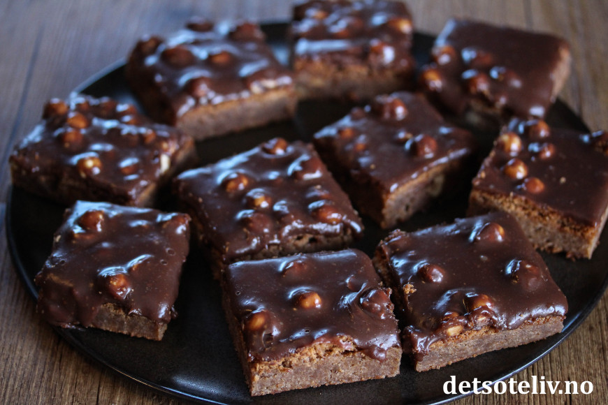 ♥ Brownies med Helnøtt holder seg myke lenge i kjøleskapet hvis du pakker dem inn i plast.