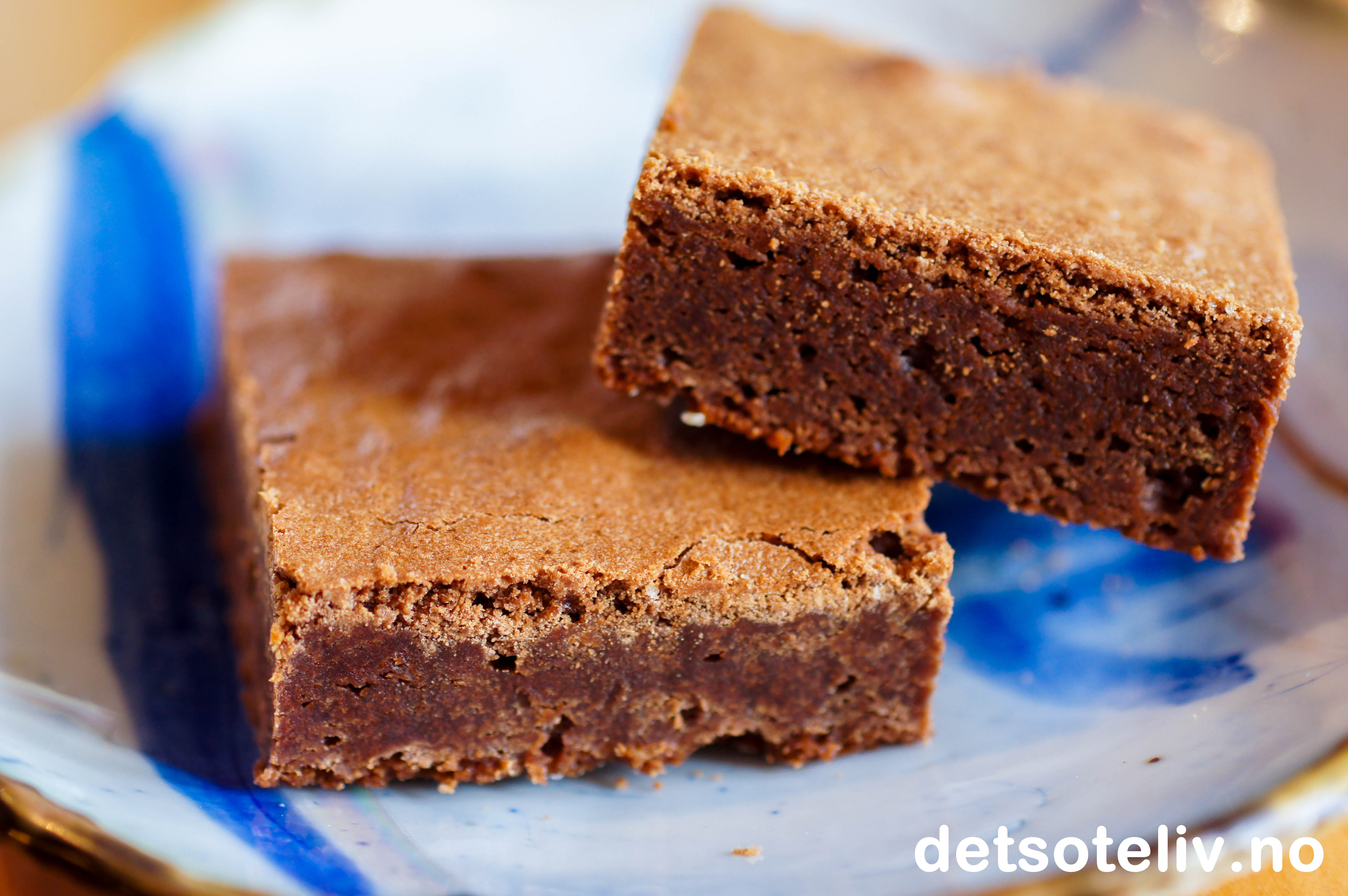 Smelt smør i en kjele. Ha i kokesjokoladen og la den smelte i smøret. Rør blandingen jevn. Avkjøl. Rør sammen egg og sukker med stålvisp (ikke visp eggedosis!). Bland i sjokoladesmøret og deretter hvetemel. Tilsett konjakk. Rør raskt sammen til en jevn og klumpfri deig.
