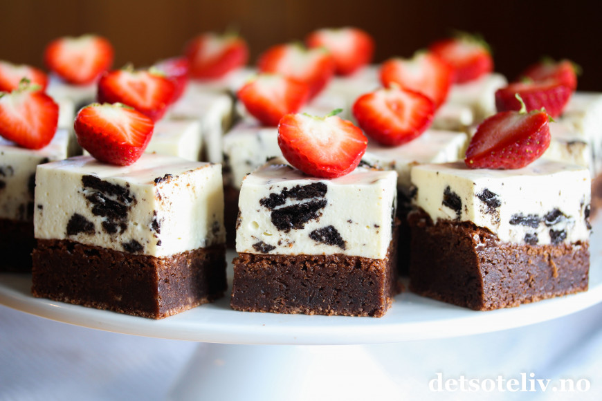 ♥ Det er viktig at brownieskaken er helt kald før du ha på Oreokremen.