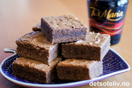 Smelt smør i en kjele. Ha i kokesjokoladen og la den smelte i smøret. Rør blandingen jevn. Avkjøl. Rør sammen egg og sukker med stålvisp (ikke visp eggedosis!). Bland i sjokoladesmøret og deretter hvetemel. Tilsett Tia Maria. Rør raskt sammen til en jevn og klumpfri deig.