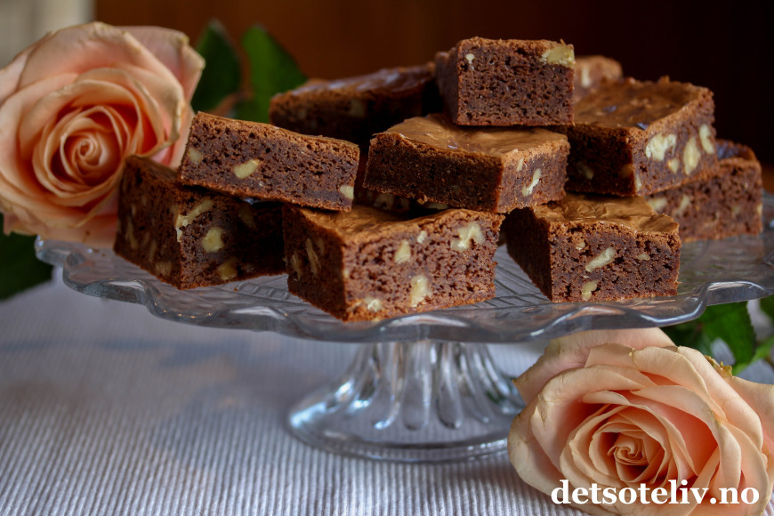 Det vil du kunne se av alle de ulike variantene du finner på detsoteliv.no. Her har du originalversjonen min på Brownies, som er med valnøtter.