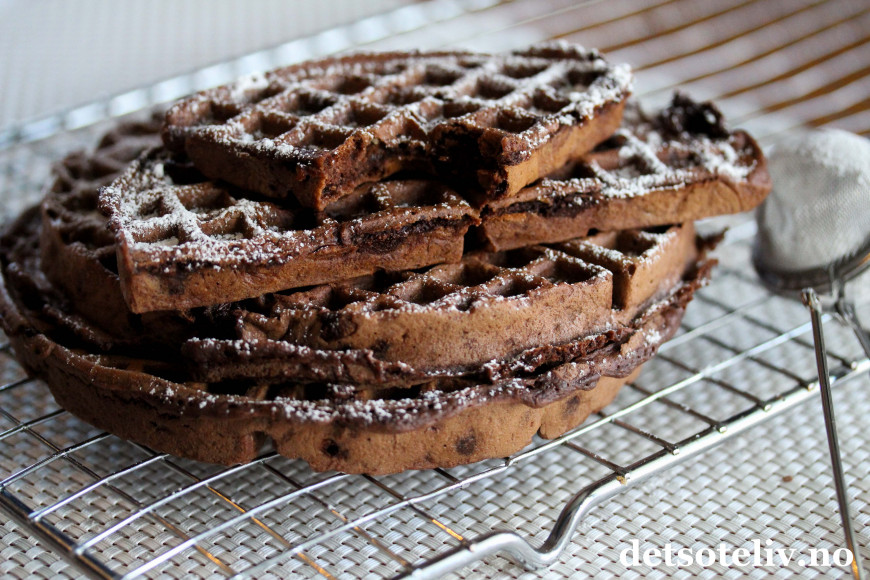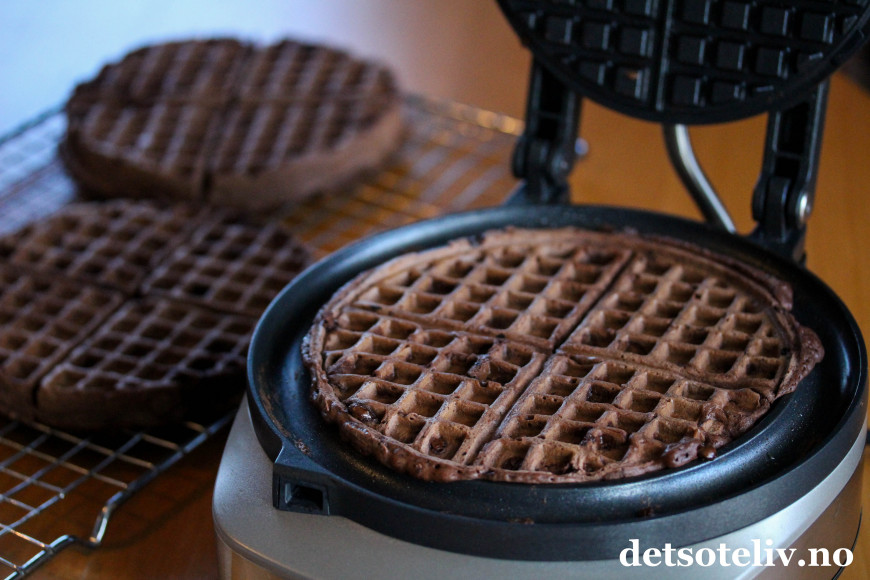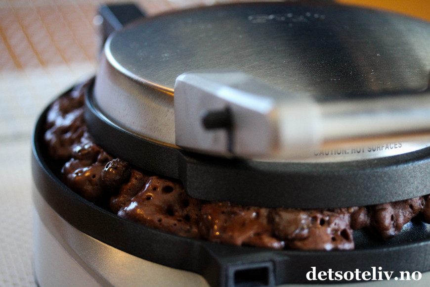 ♥ Merk at dette er en amerikansk oppskrift som gir nokså kompakte og kakeaktige browniesvafler. Det er slik de skal være! Vaflene smaker definitivt best samme dag og aller helst helt nystekte!
