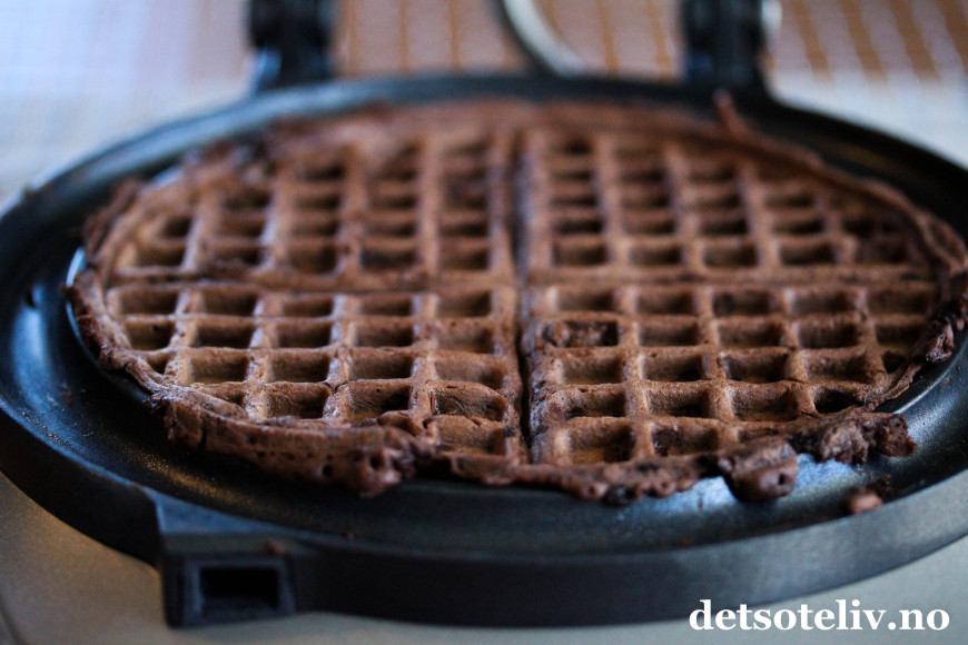 ♥ Ikke stek vaflene for lenge, for da blir de tørre. De skal være akkurat gjennomstekte, men kan gjerne være littegrann bløte i midten.