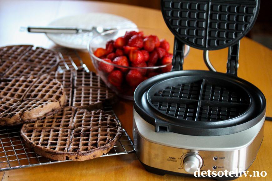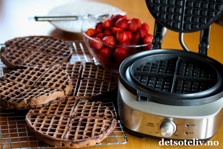 Jeg har lenge hatt lyst til å lage slike tykke, runde vafler som jeg lenge har sett på pinterest og amerikanske matblogger, så gleden var stor da jeg fant ut hvor jeg kunne få tak i et slikt vaffeljern! I nettbutikken til Bakeren og Kokken finnes det vaffeljern i mange varianter, blant annet dette spesielle som gir tykke, runde vafler.