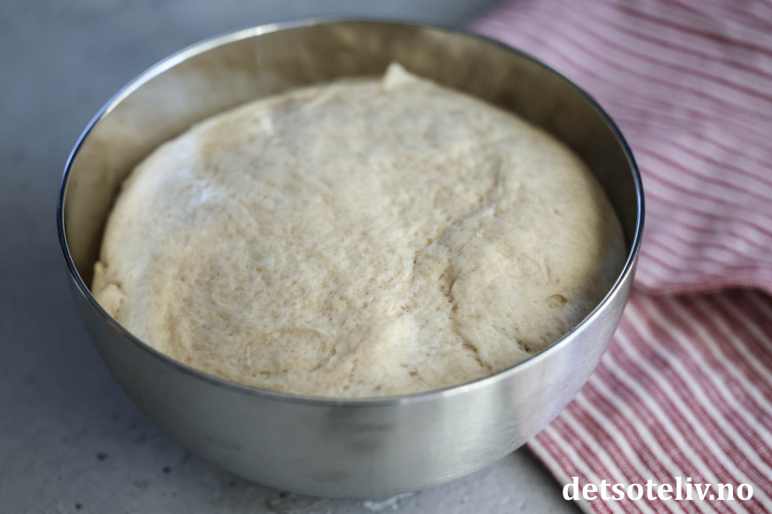 Elt deretter inn hvetemelet til en liten, smidig deig.