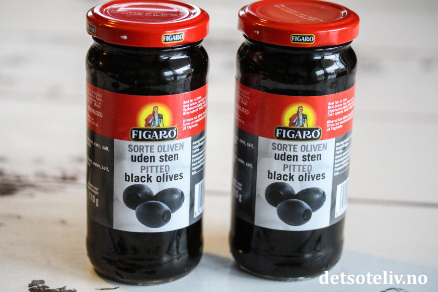♥ Jeg bruker her sorte oliven uten stener som ligger i lake.