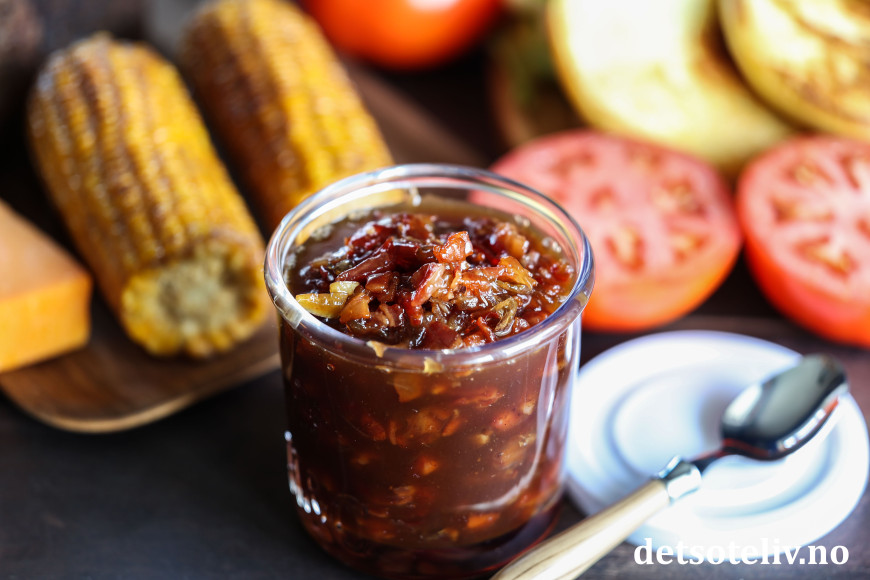 Denne baconmarmeladen passer utrolig godt i en burger!
