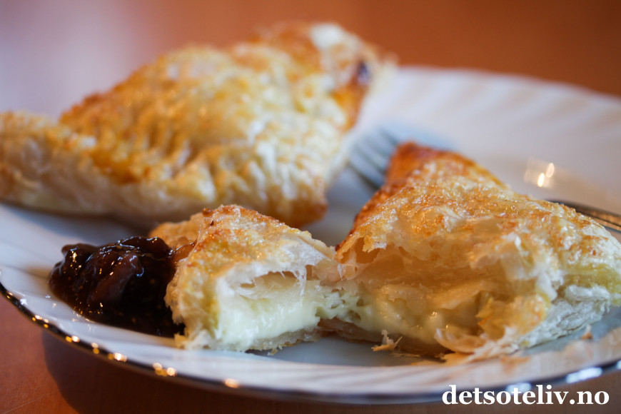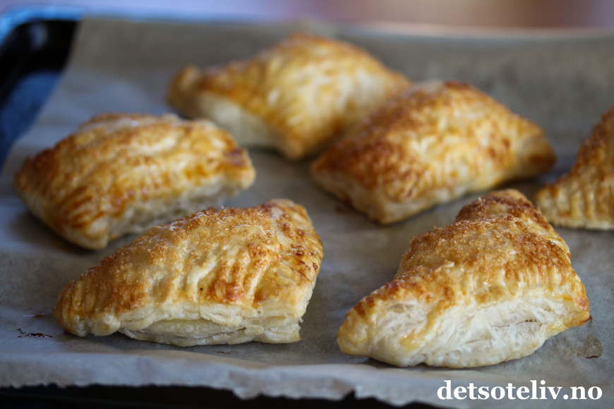 ♥ Det er viktig at butterdeigskakene serveres varme og nystekte, slik at butterdeigen er skikkelig sprø og luftig og osten bløt og smeltet.
