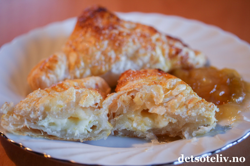 ♥ Du kan også smøre litt syltetøy over osten inni butterdeigskakene.
