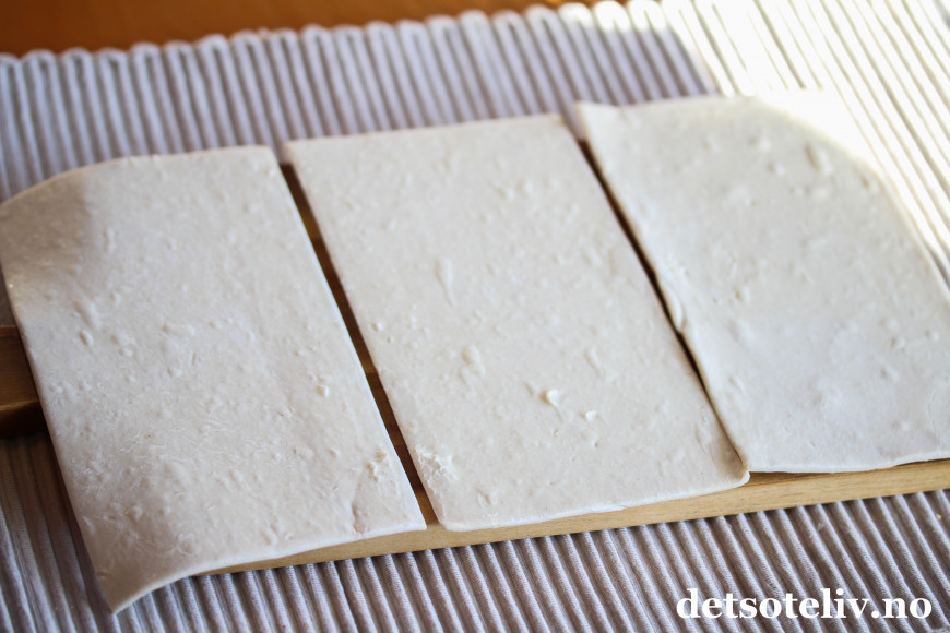 Legg de frosne butterdeigsplatene utover og la dem tine (det tar ca 15-20 minutter).