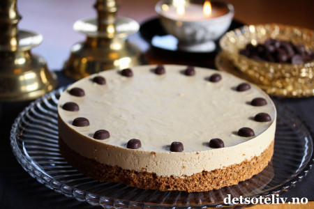 Pynt kaken med mokkabønner når den er frossen. Når kaken er frossen løsner kaken lett fra formen. Ta kaken ut av fryseren ca 30 min før servering.