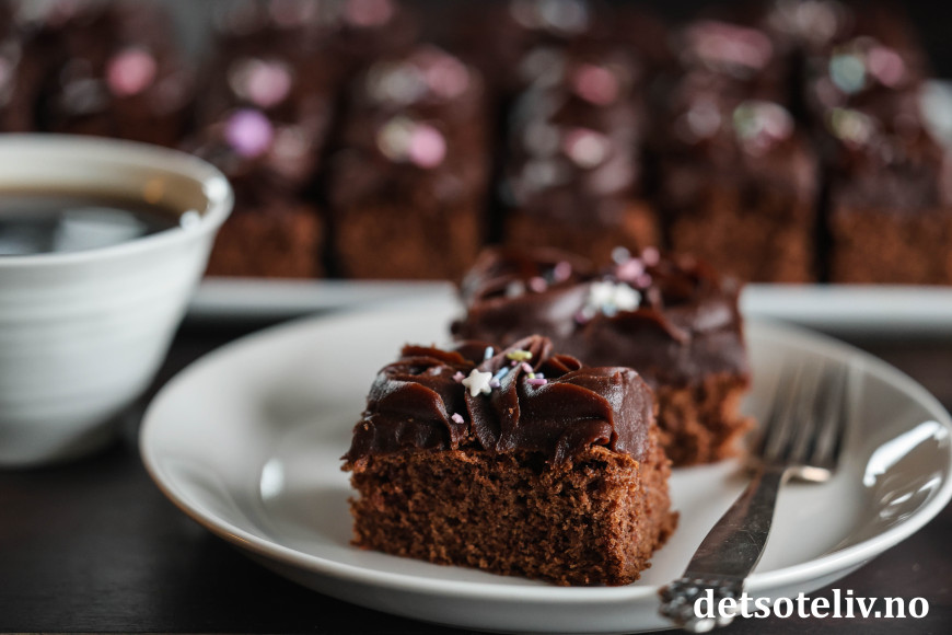 Denne sjokoladekaken i langpanne kan virkelig anbefales!