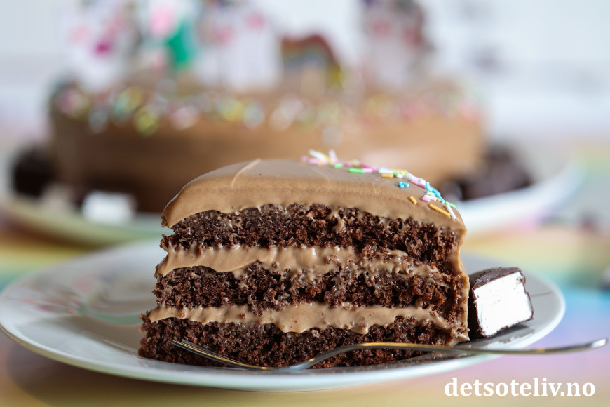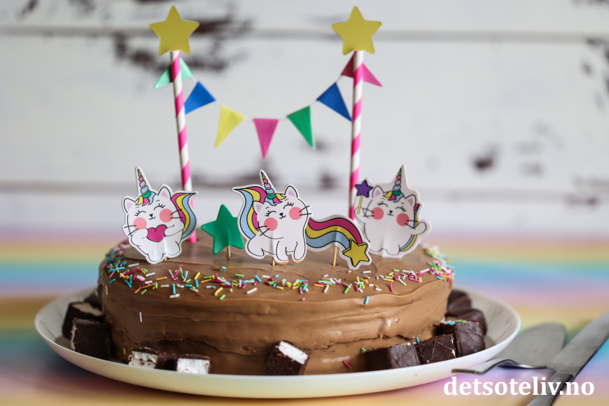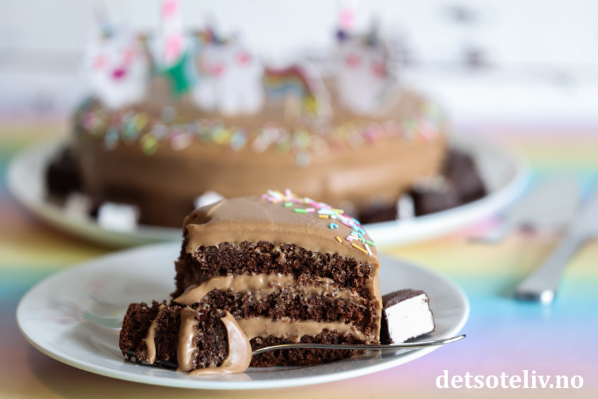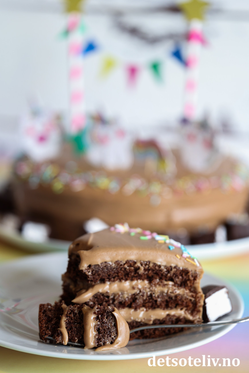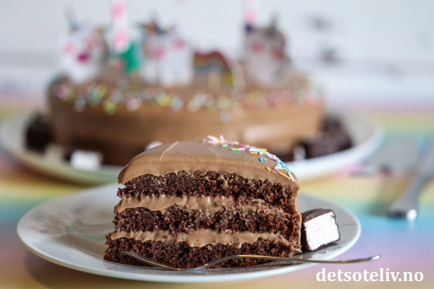 Dette ble en veldig, veldig god sjokoladekake, og en kake som jeg tenker er ganske så ideell til barneselskap! 😃