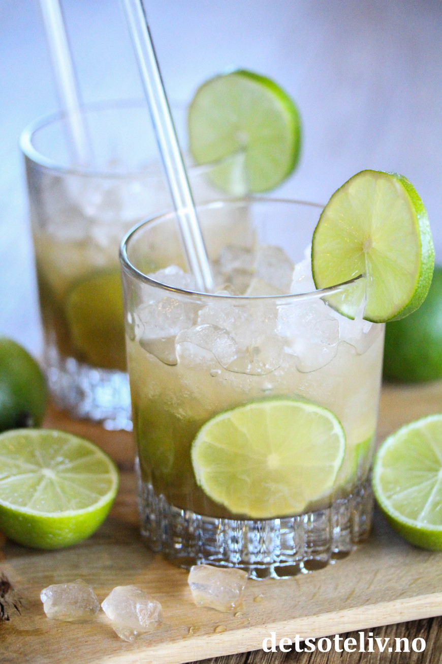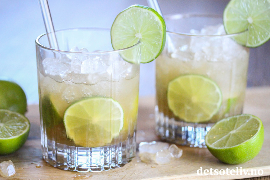 ♥ Virgin Caipirinha: For en alkoholfri variant beholder du lime, brunt sukker og knust is, men dropper brennevinet og fyller opp glasset med Ginger ale (ingefærøl) i stedet.
