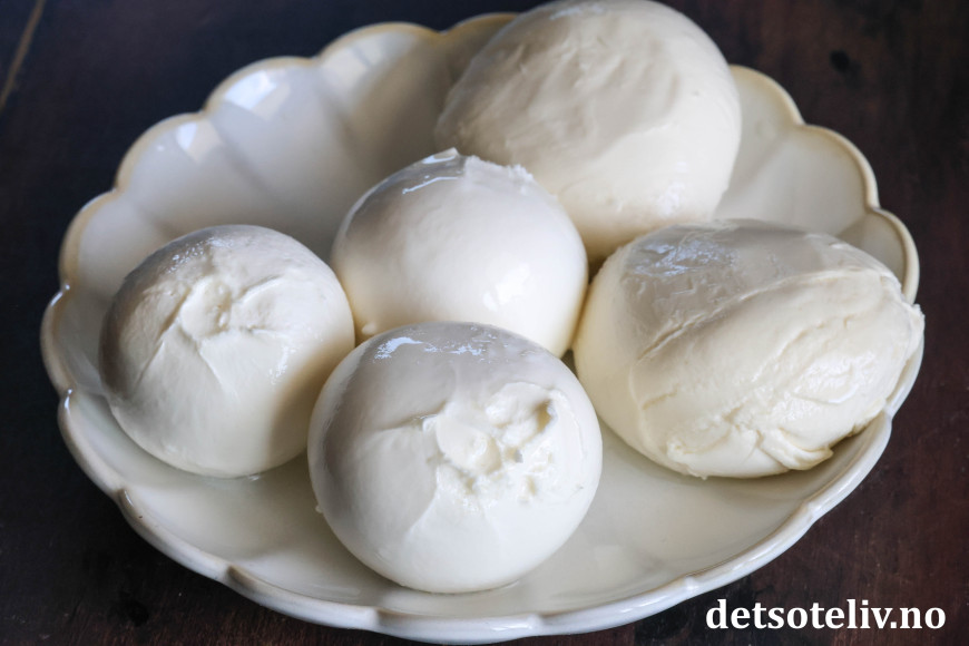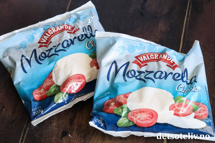 ♥ Fersk mozzarella fås kjøpt i de fleste norske matbutikkene. Osteballene ligger i små poser med saltlake (ca. 125 gram per pose).