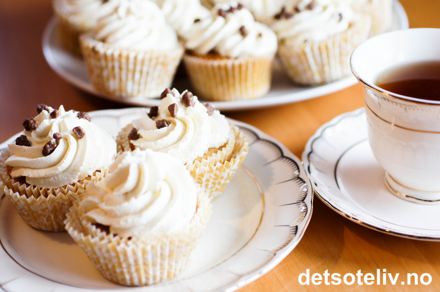 Daimstrøssel på toppen gir perfekt finish, men cupcakesene er også gode med bare krem på!