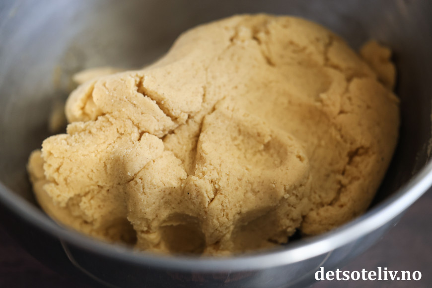 Ha så i hvetemelet og kna deigen raskt sammen med hendene til en jevn og fin mørdeig.