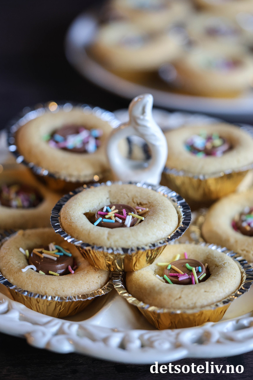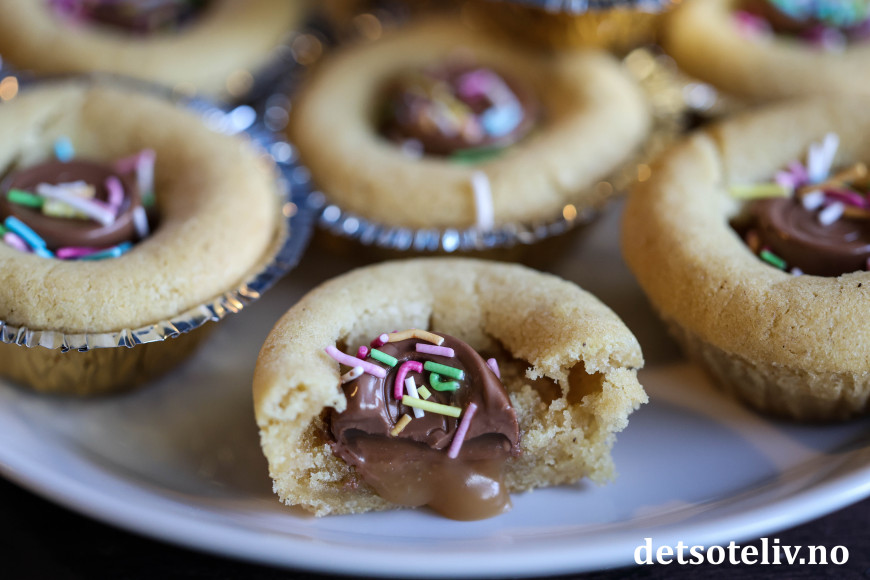 Lekre mørdeigskaker med sjokolade- og karamellfyll. 😋