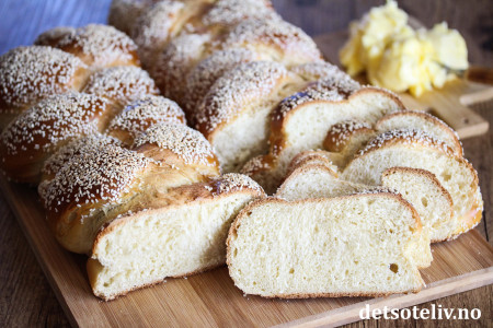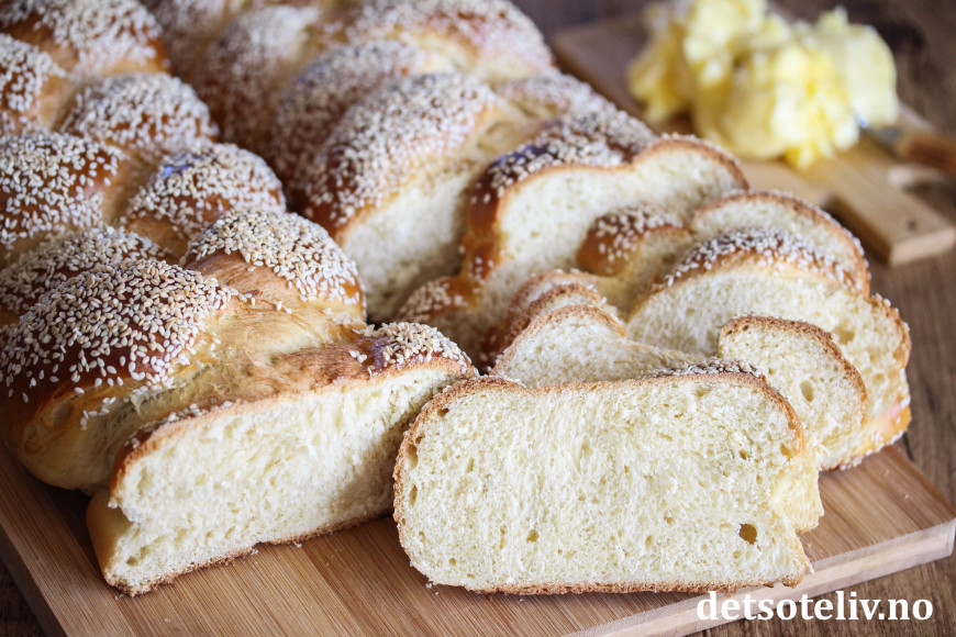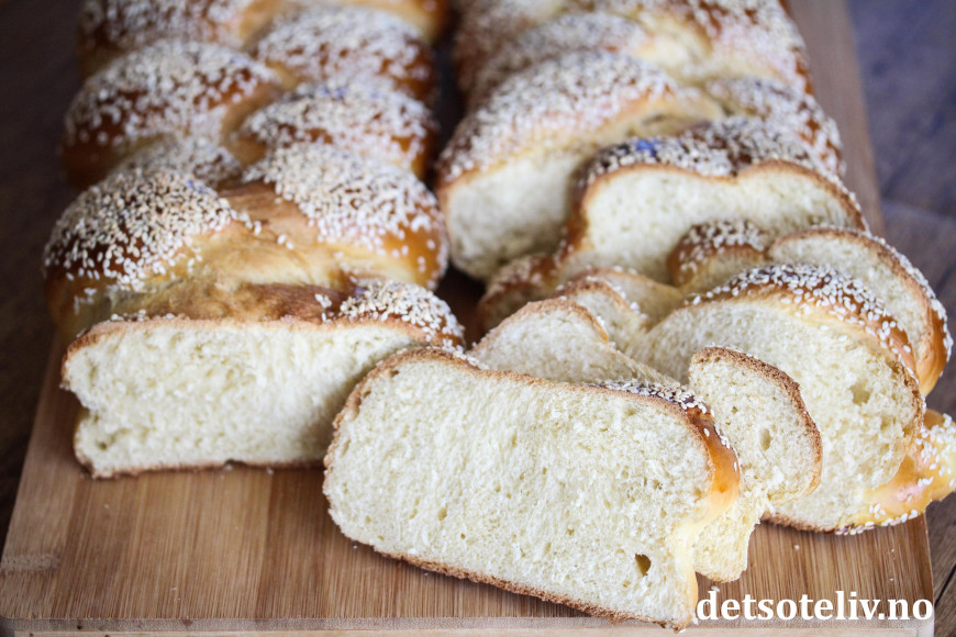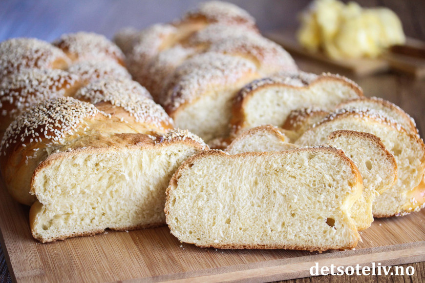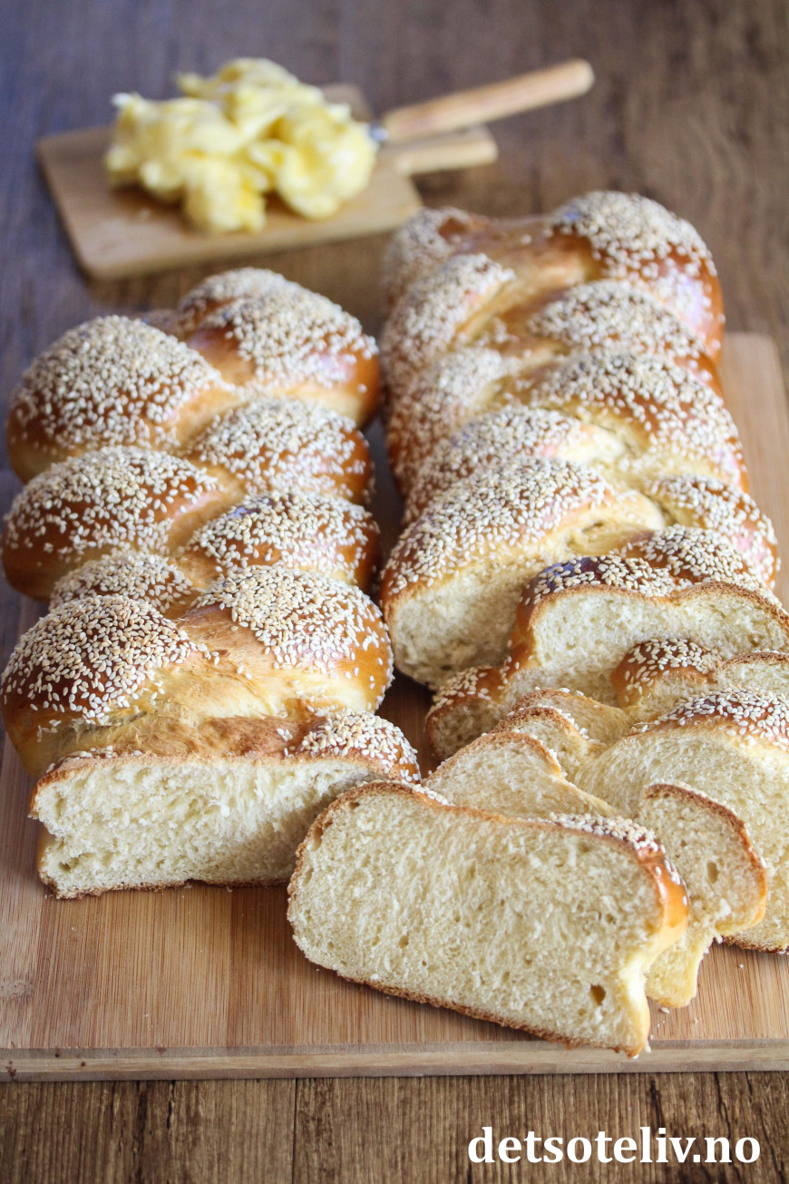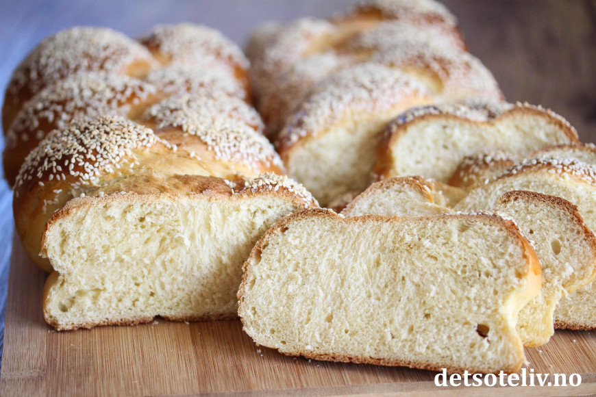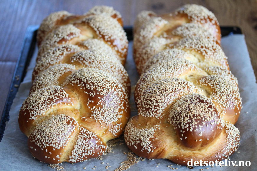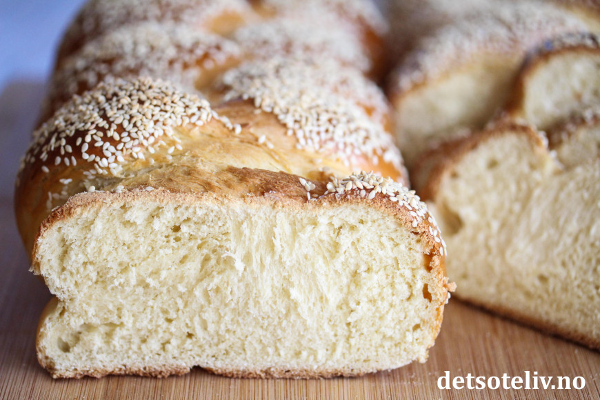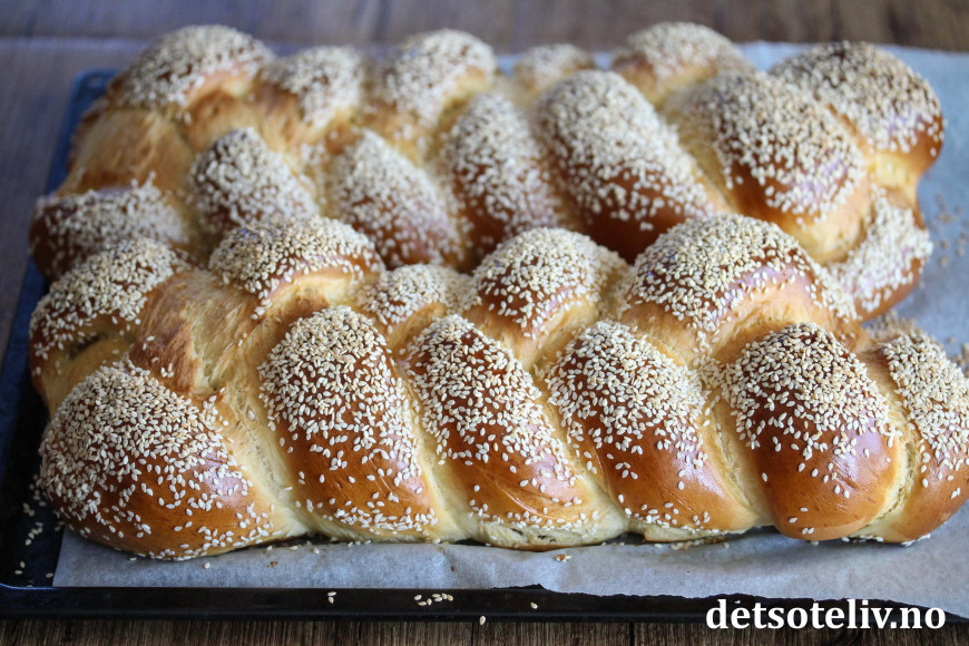 Challah lages som regel med flettefasong og drysses med sesamfrø.