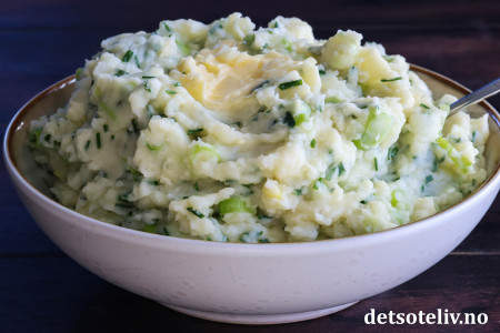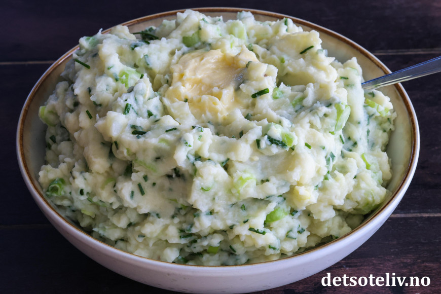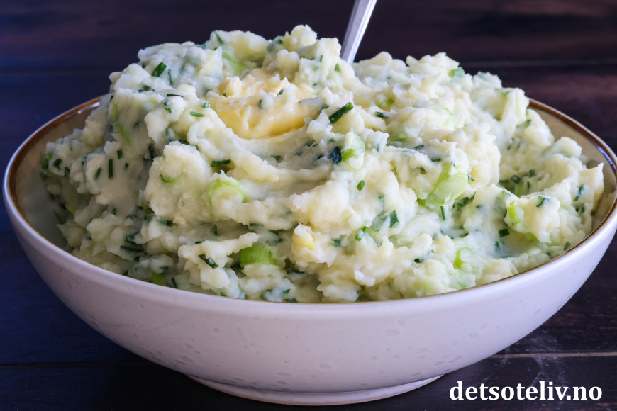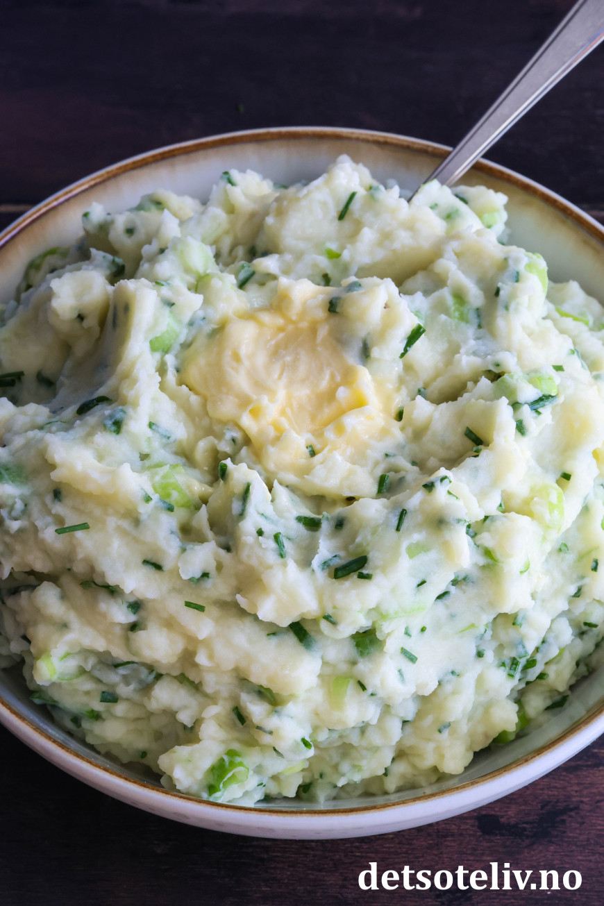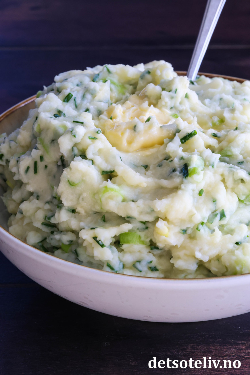 ♥ Champ smaker best varm og nylaget. Potetmosen blir tykkere av å bli stående. Du kan da spe den ut med litt ekstra melk og varme opp på nytt.