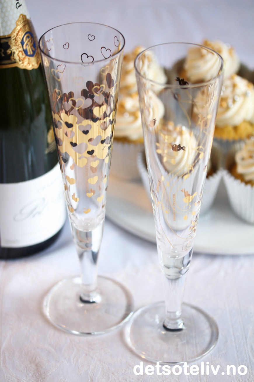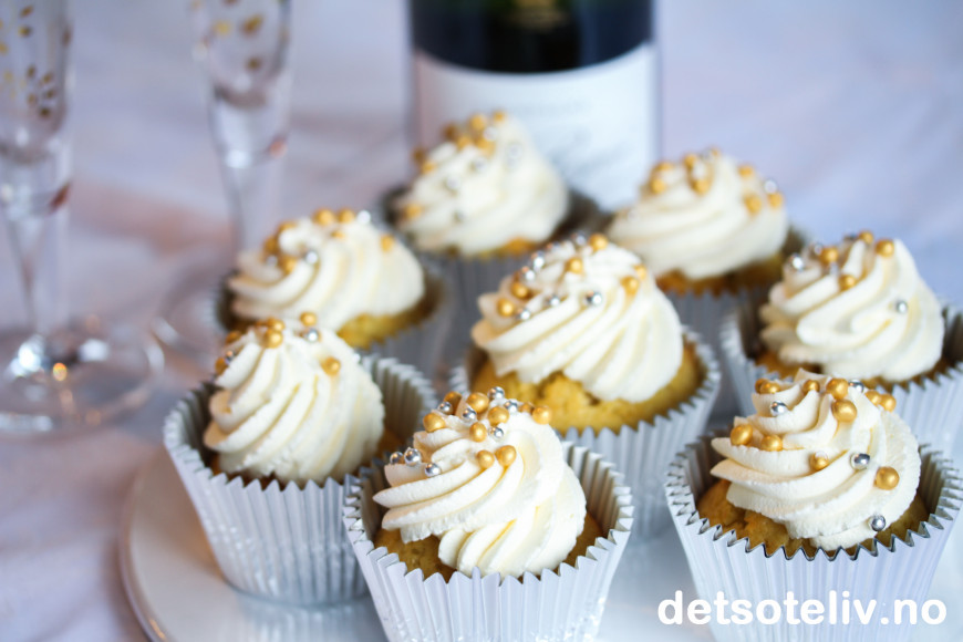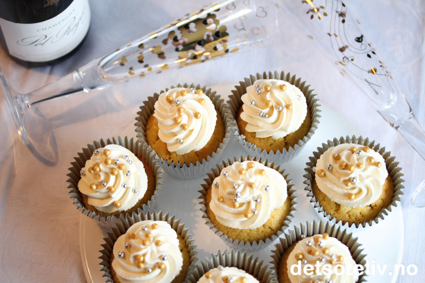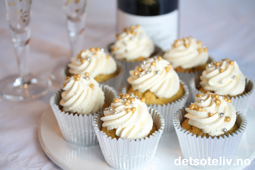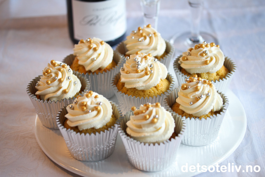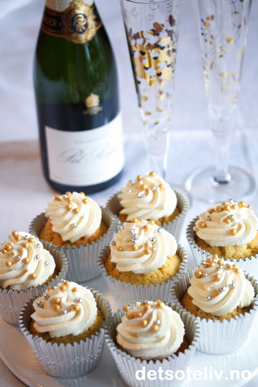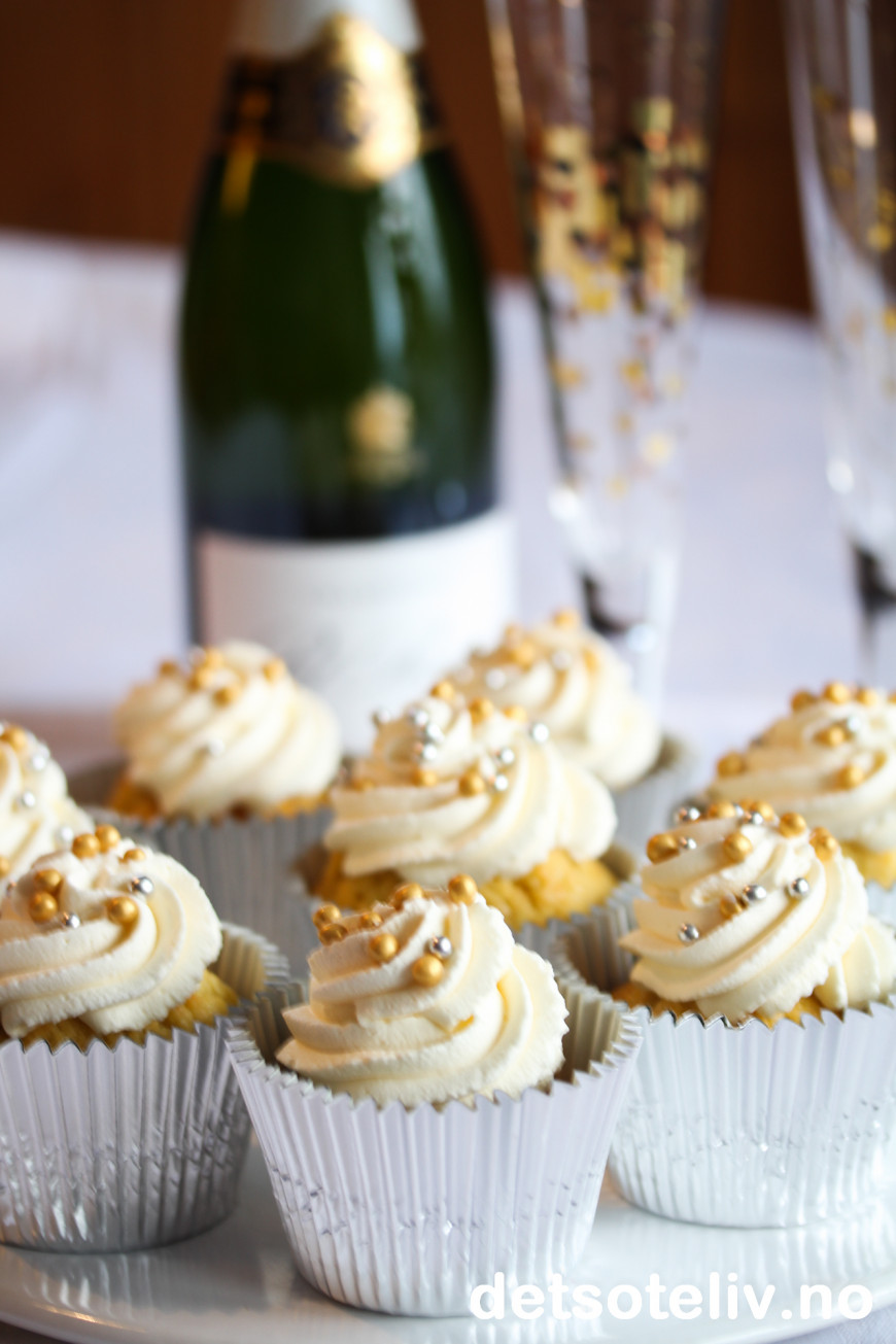 Cupcakesene kan også serveres til barn! Bare dropp champagnen i kremen.