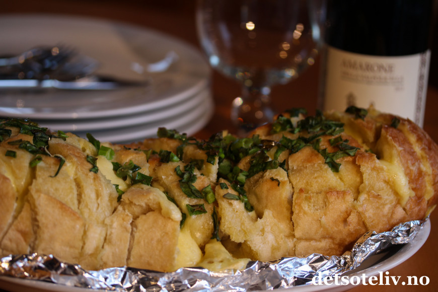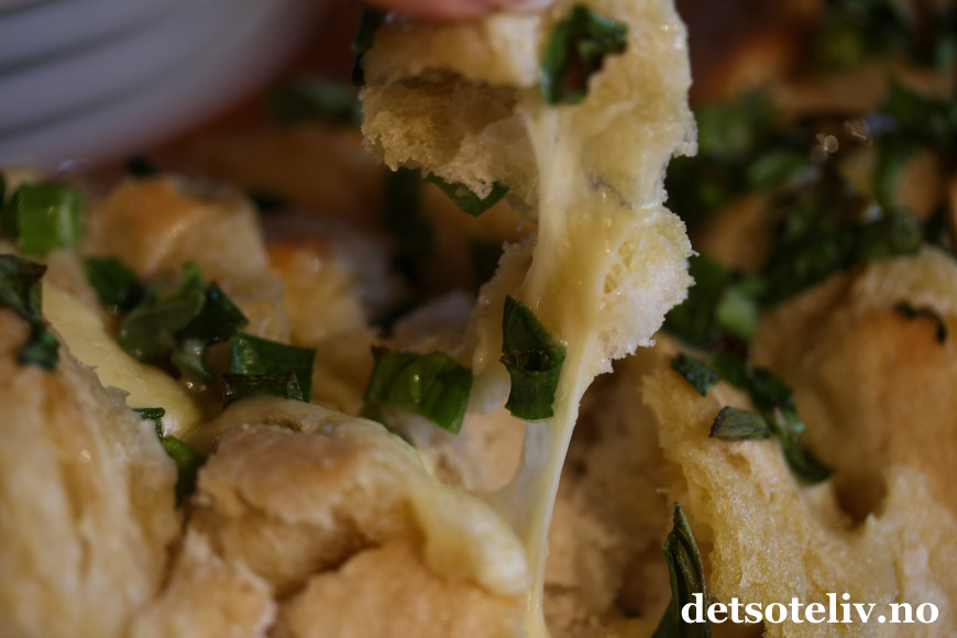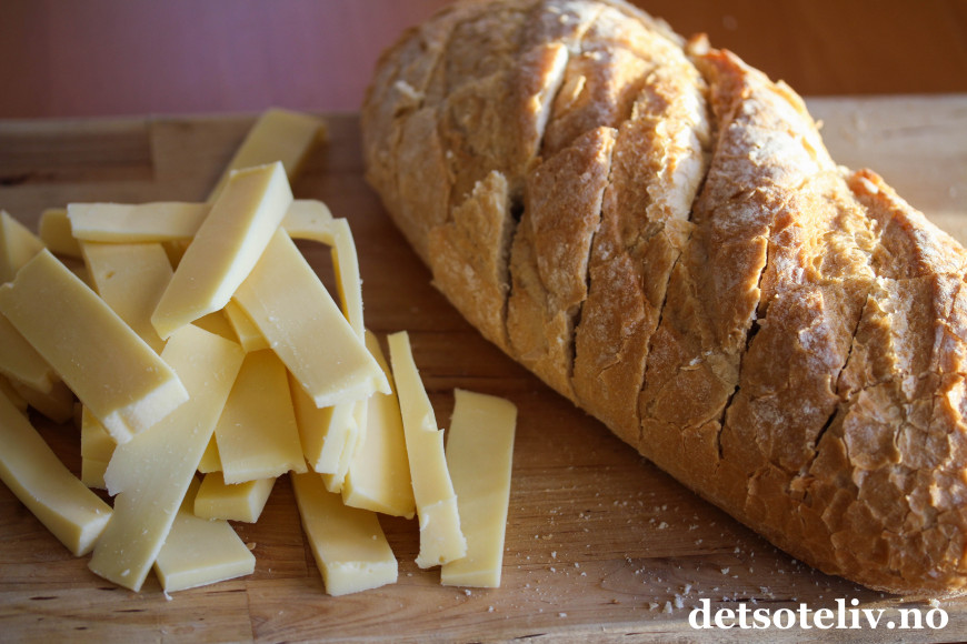 ♥ Ostebrødet smaker godt som tilbehør til mange slags middager. Ved servering er det meningen at man skal forsyne seg med hendene!