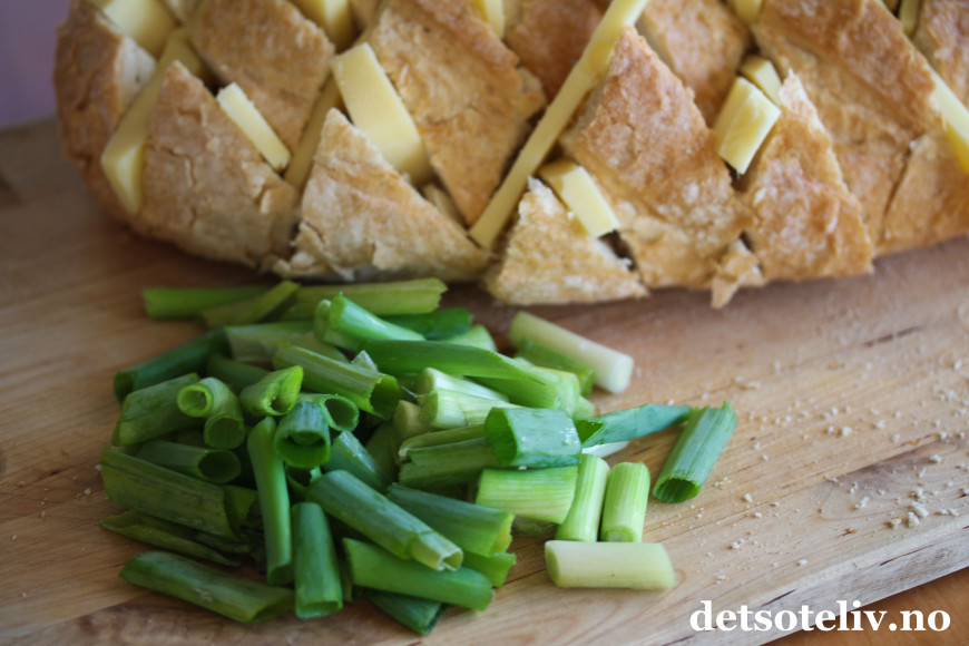 Jeg har i tillegg brukt hvitløk og vårløk for ekstra god smak, men det blir også fantastisk godt med for eksempel skinkebiter.