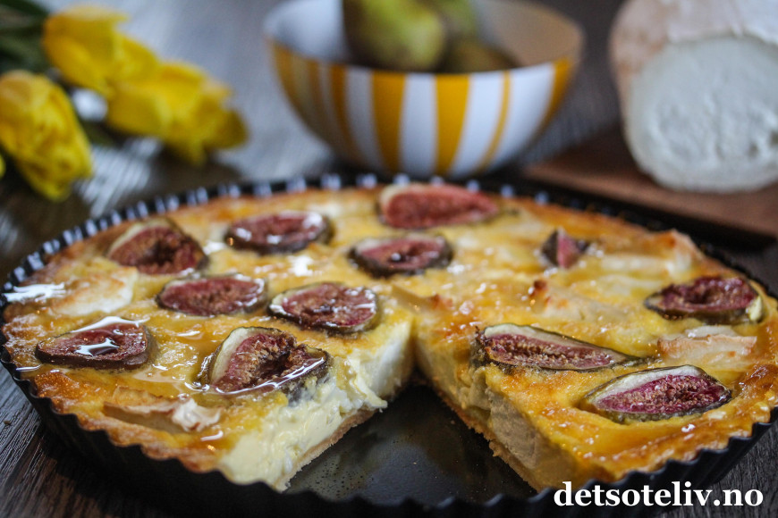 Et godt mattips til helgen er denne kjempegode paien med chèvre og ferske fiken. Paien har kremete fyll og serveres varm med flytende honning.